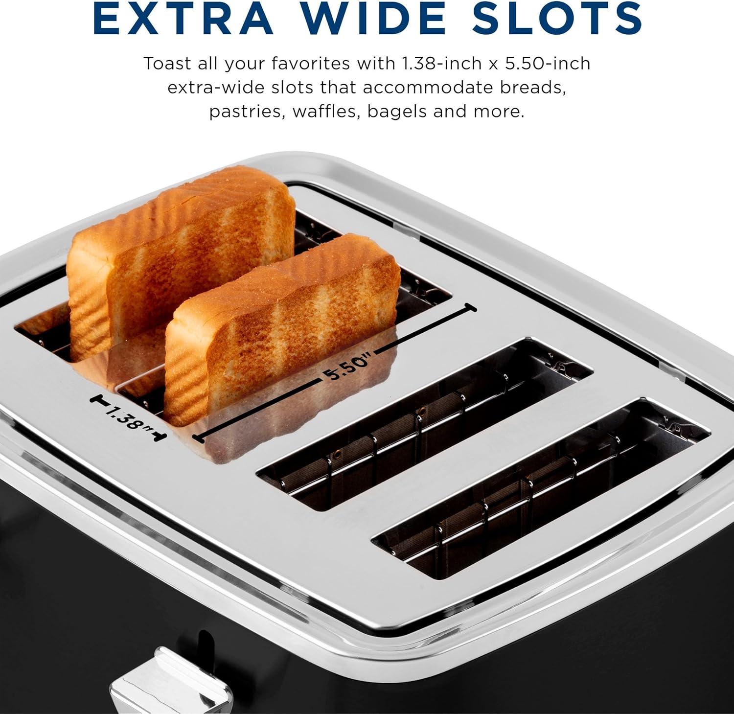 EXTRA WIDE TOASTER SLOTS – Accommodate various types of breads, pastries, waffles and bagels with wide slots that measure 1.38″ x 5.50″.