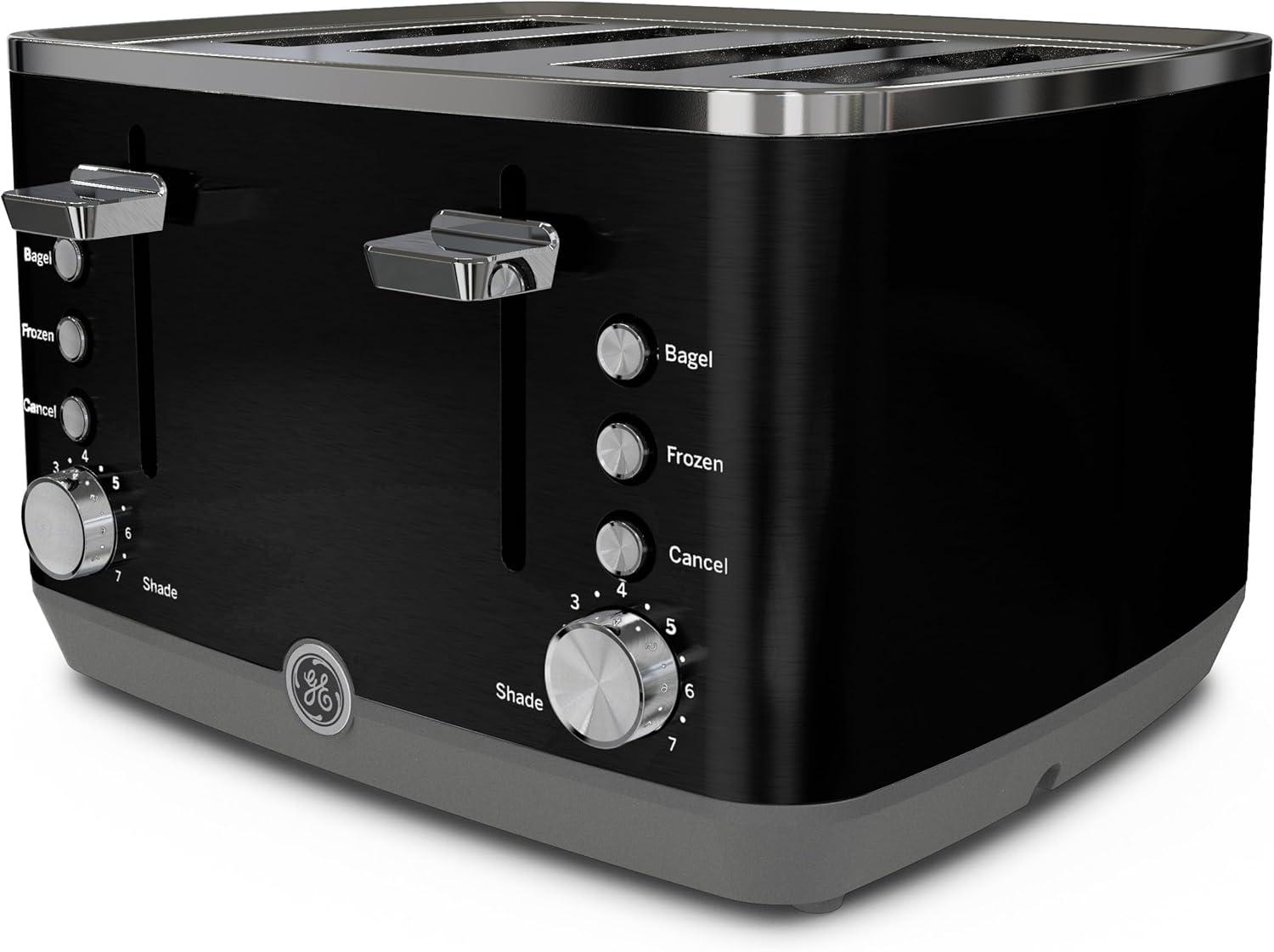 GE 4 Slice Toaster | Extra Wide Slots for Bagels, Breads, Waffles & More | 7 Shade Options | Countertop Kitchen Essentials | 1500 watt, White(Stainless Steel)