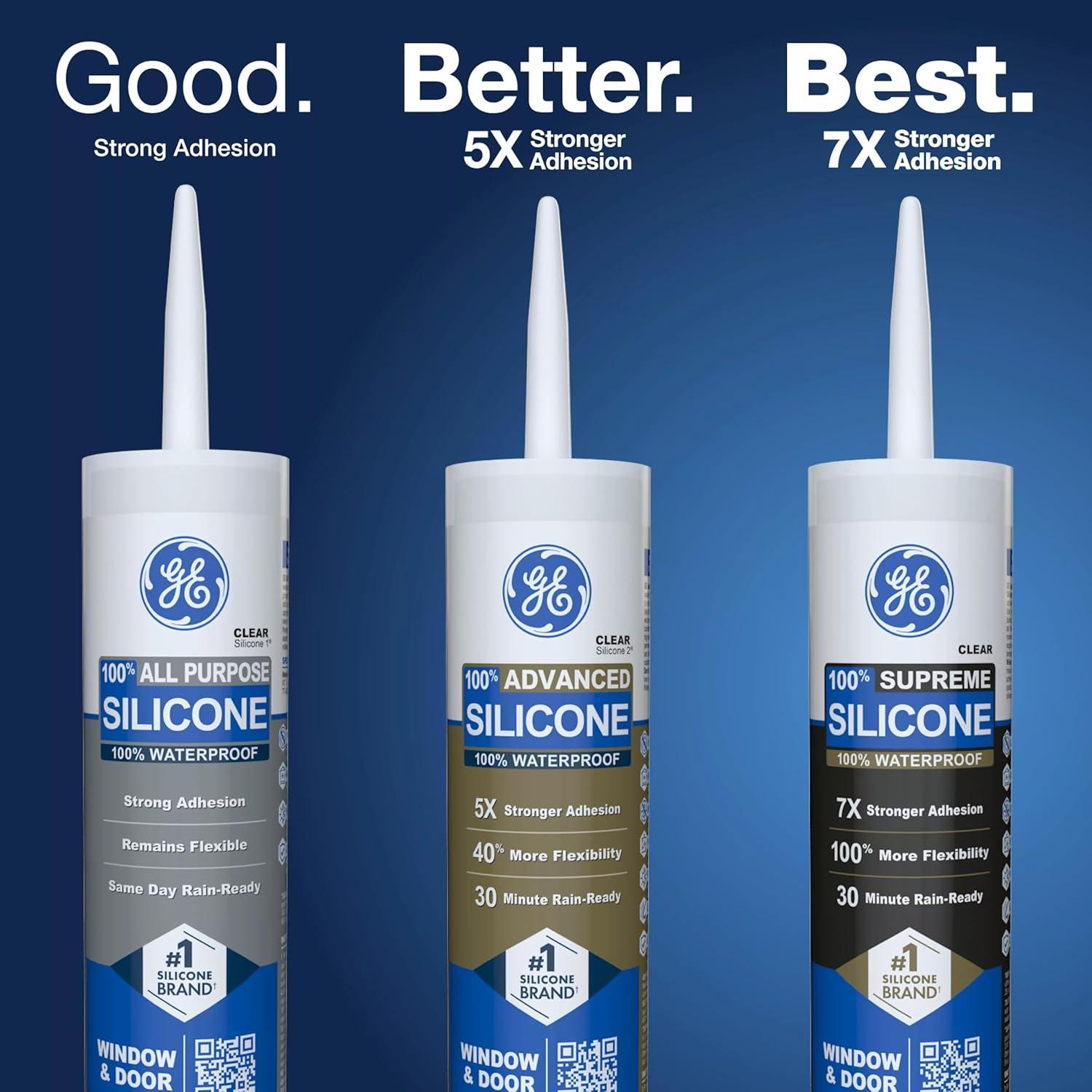 GE All Purpose Silicone Caulk – 100% Waterproof Silicone Sealant, Stronger Adhesion, Freeze & Sun Proof – 10 oz Cartridge, Clear, Pack of 1