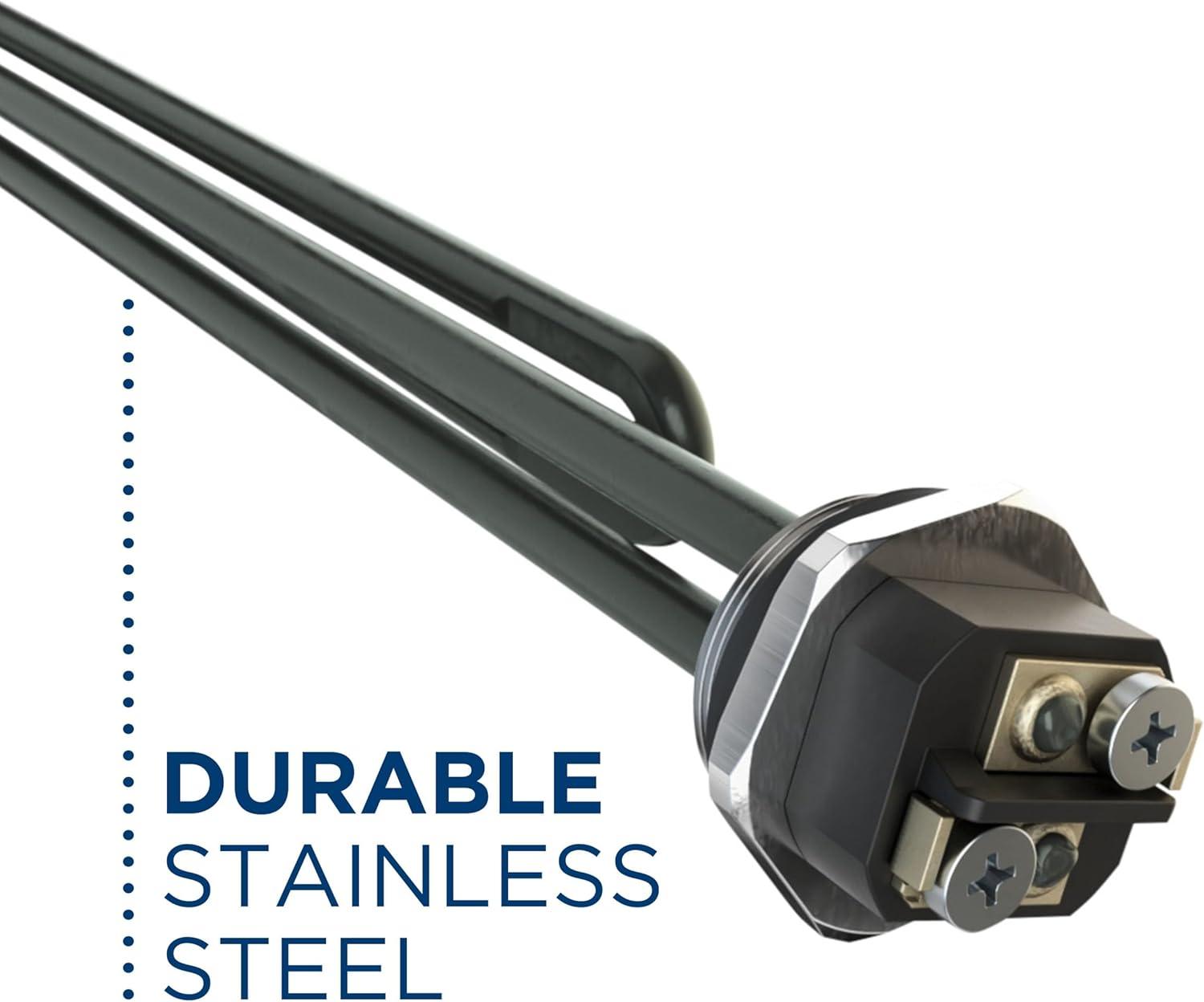 STAINLESS STEEL HEATING ELEMENT – Provides reliable heat with ultra-durable design that resists rust and corrosion