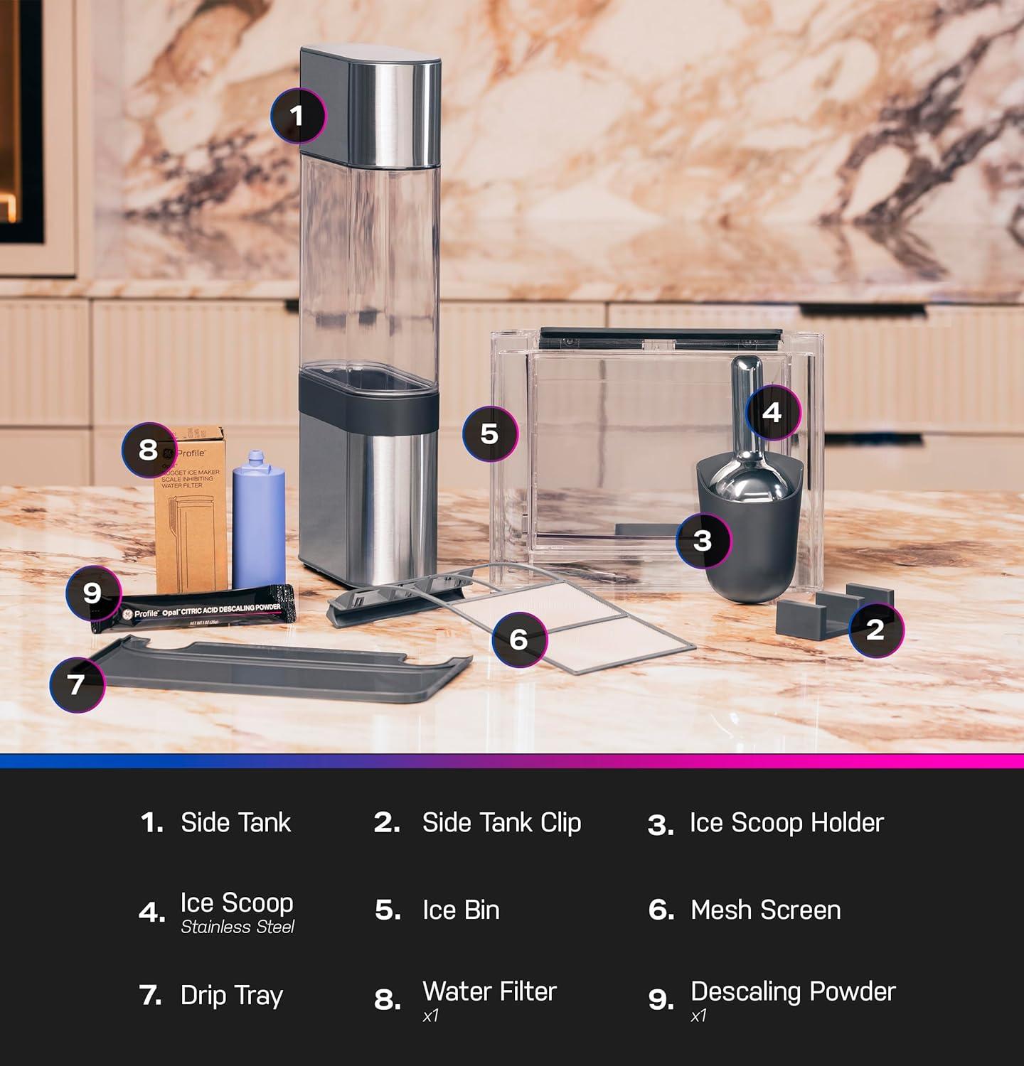 Advanced Cleaning System: Skip the scrubbing thanks to an advanced cleaning system ice maker that helps sanitize and descale when used regularly, keeping ice tasting fresh and machine performance at its best