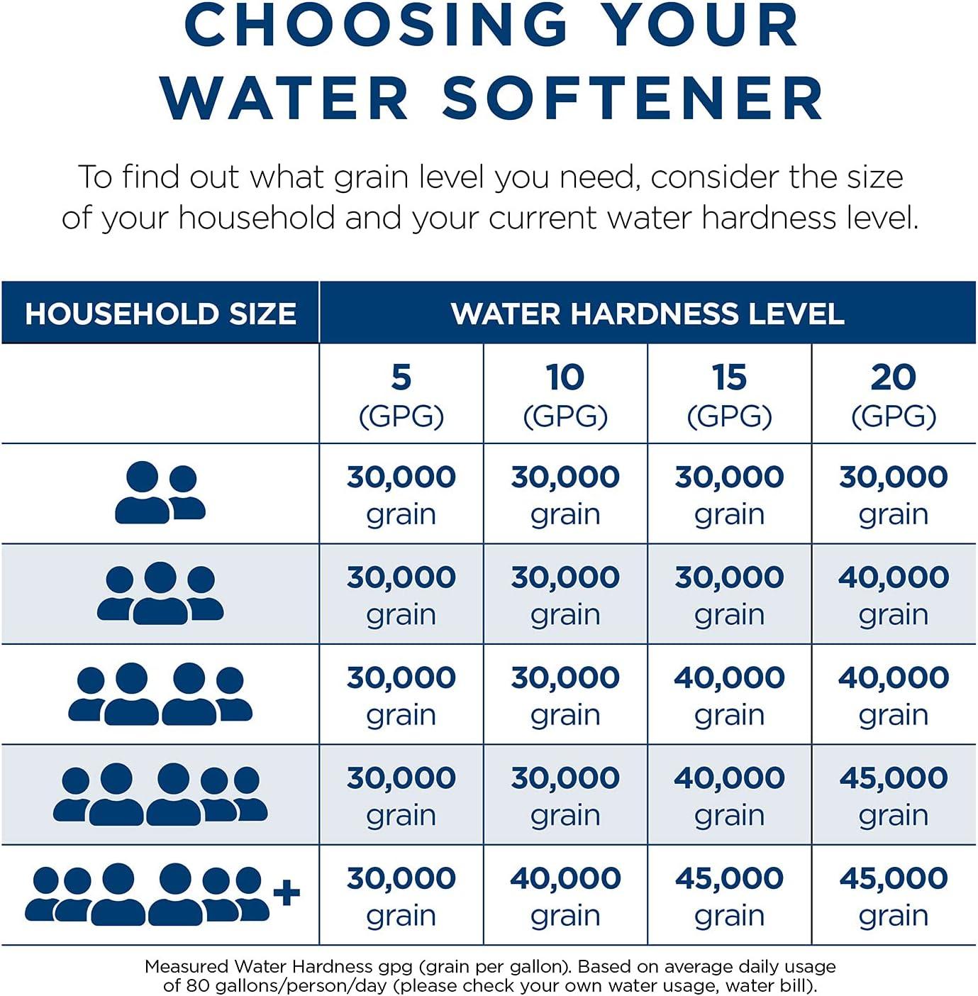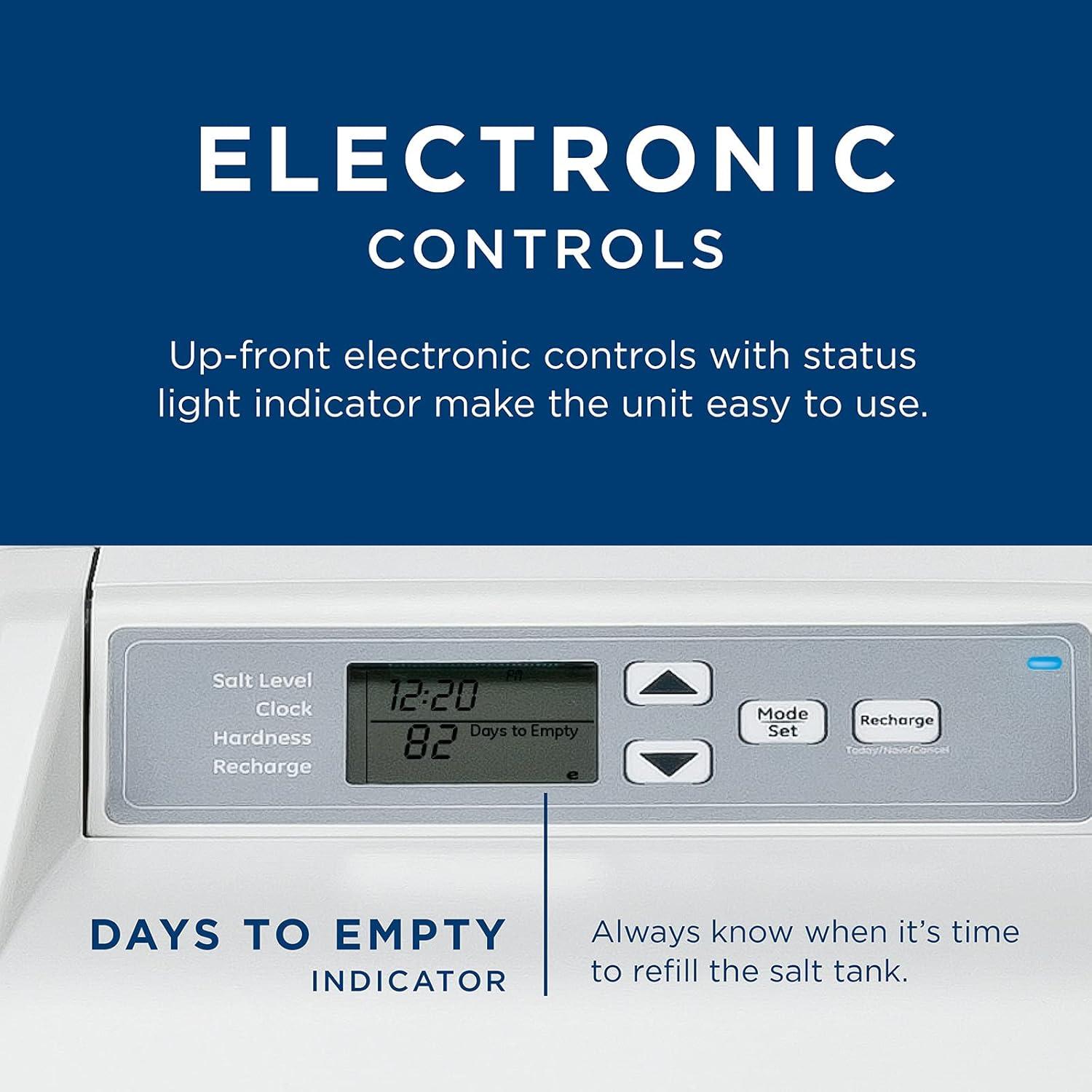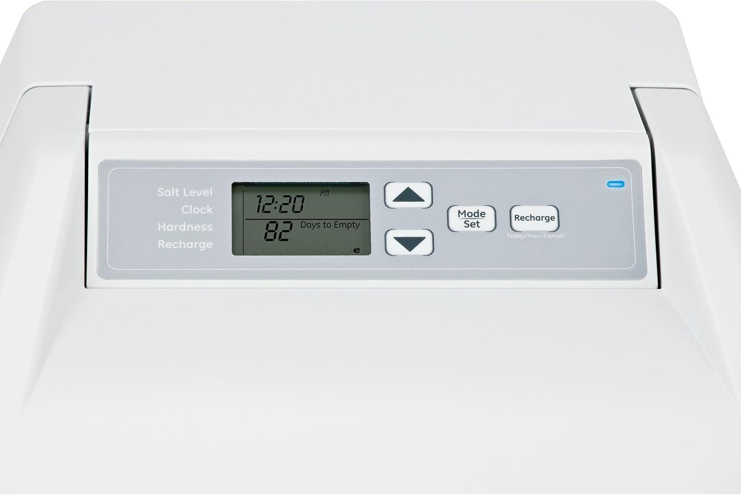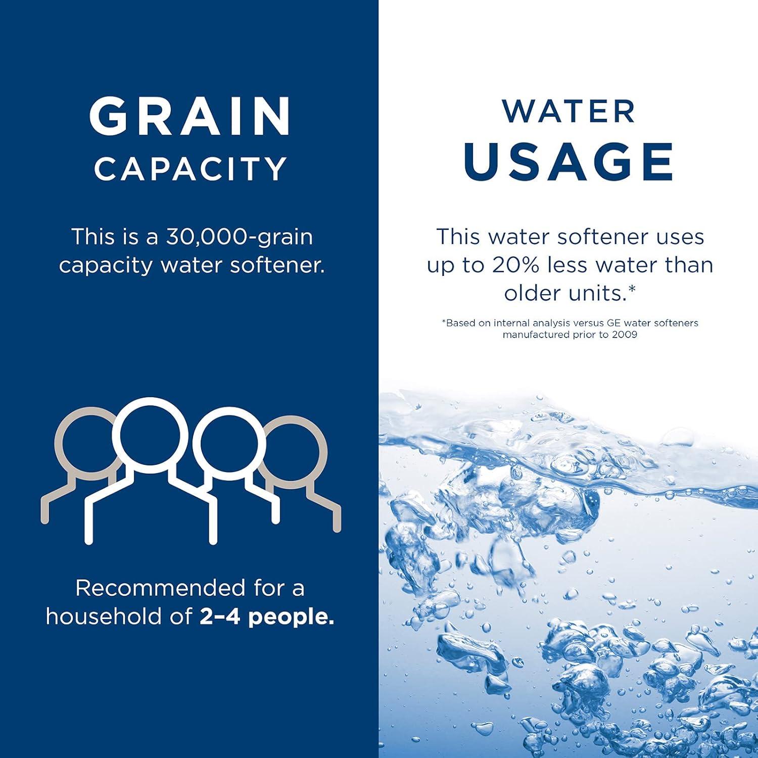 The GE GXSF30V 30,400-Grain Water Softener System enhances the quality of water throughout your home for cleaner dishes, less water-heater scale buildup and potential energy savings. It has 95 grains per gallon maximum hardness-removal capacity and it also removes 7 PPM of iron. Handy features include programmable operation and a permanent memory in case the power goes out. This water softener even adapts to your usage patterns to help ensure you have soft water when you need it.