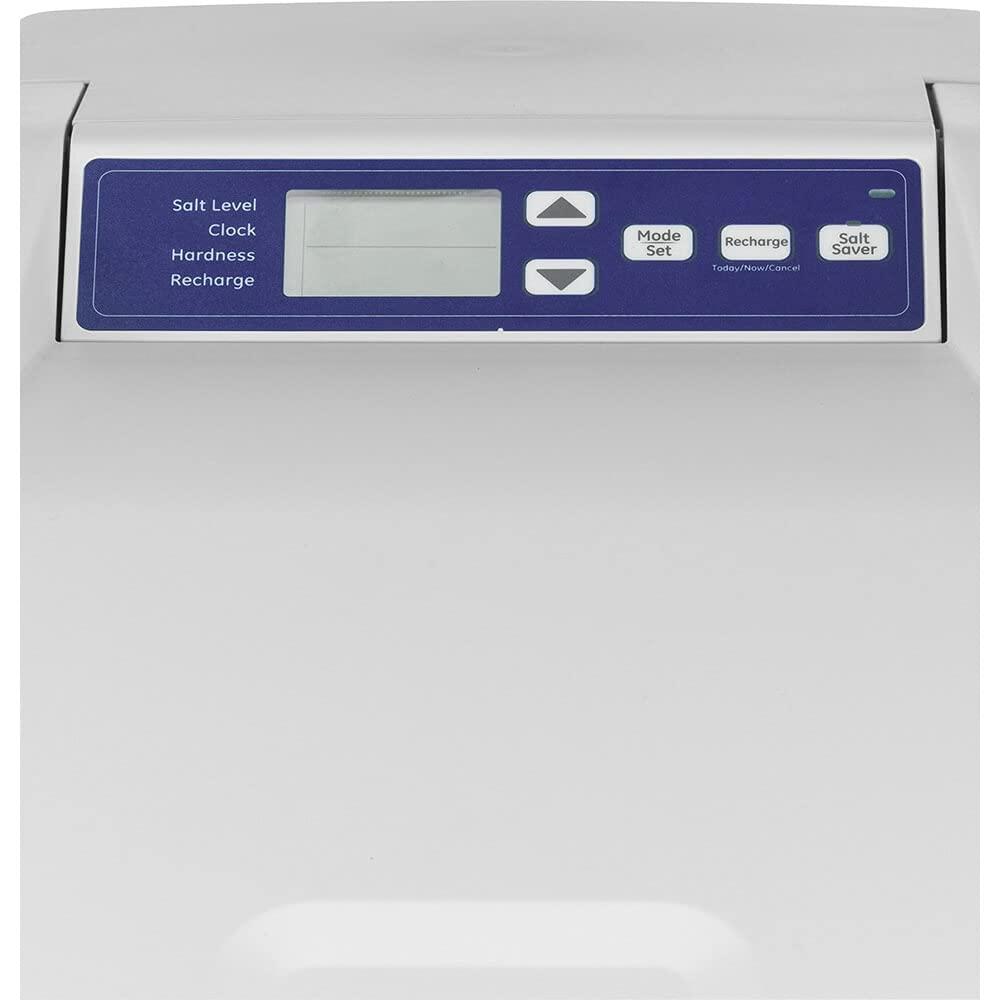 The GE GXMH31H 31,100-Grain Water Softener System and Filter In One enhances the quality of water throughout your home for cleaner dishes, less water-heater scale buildup and potential energy savings. This unit reduces chlorine taste and odor with built-in water filtration. It has 120 grains per gallon maximum hardness-removal capacity and it also removes 3 PPM of iron. Handy features include programmable operation and a permanent memory in case the power goes out. This water softener even adapts to your usage patterns to help ensure you have soft water when you need it.